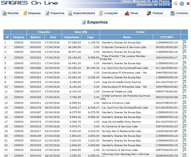 Câmara de João Pessoa aumenta 1.497% os gastos com material de consumo em um mês