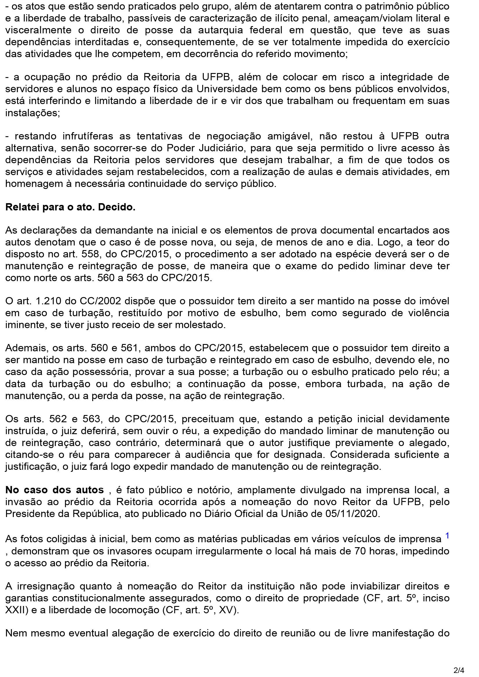 Justiça Federal determina reintegração de posse na UFPB e manda estudantes desocuparem prédio da reitoria sob pena de multa no valor de R$ 1.000