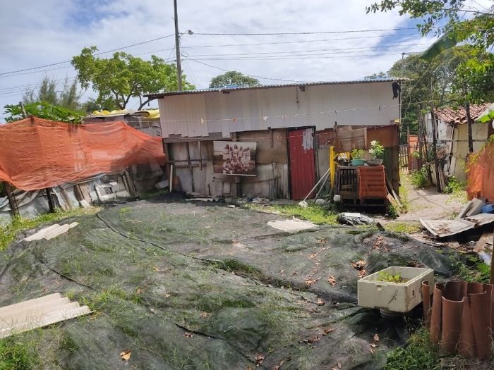 O técnico de enfermagem Robson de 28 anos vive em uma casa de madeira com sua esposa e filha de 2 anos em Cabedelo, na Paraíba. Uma vaquinha está sendo realizada para reconstruir a casa que não tem muro, paredes e o chão de concreto.