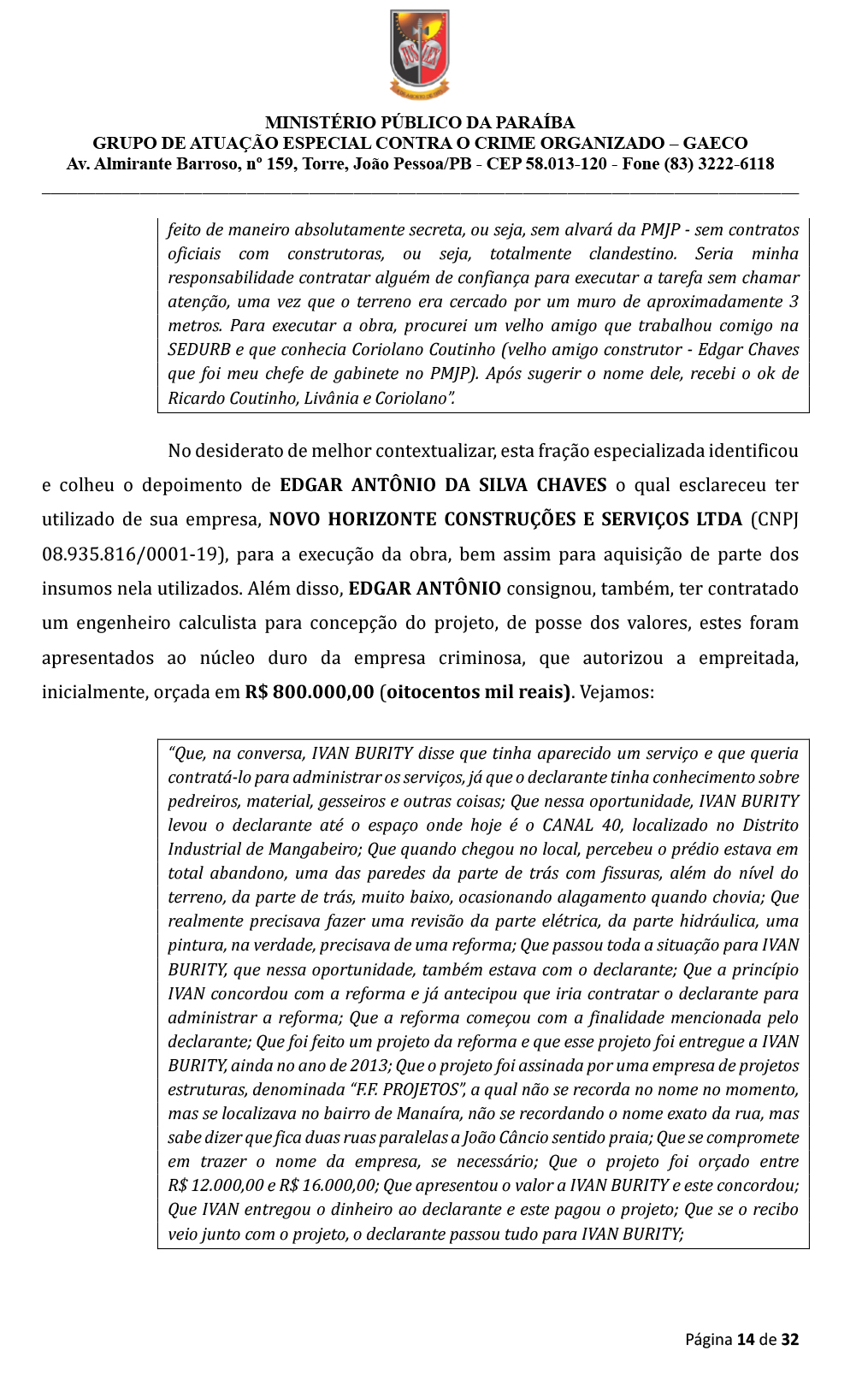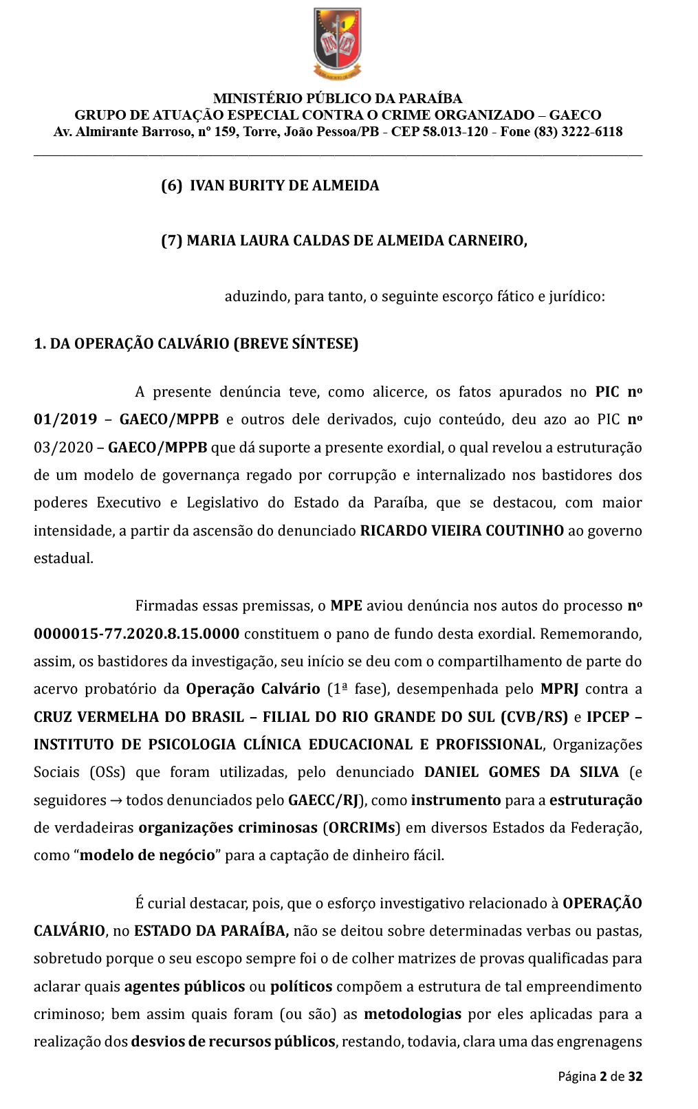 Gaeco denuncia Ricardo Coutinho, Coriolano, Valéria Coutinho, Livânia, Laura Caldas, Ivan Burity e cunhado do ex-governador por desvio de dinheiro para obra em prédio do Canal 40