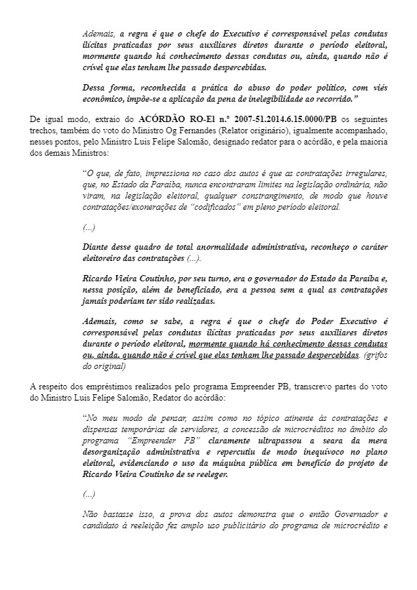 Relatoria destacou não existir registro de suspensão das decisões colegiadas do TSE, em julgamento da candidatura de Ricardo Coutinho no TRE-PB