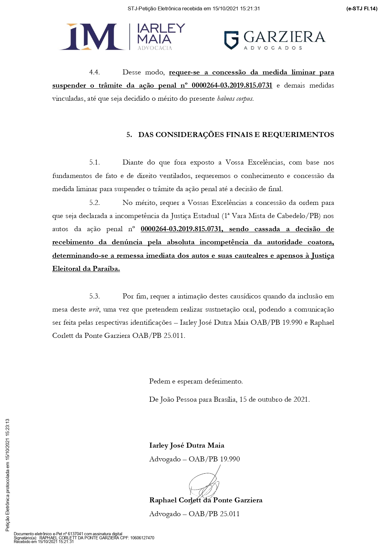 STJ anula decisões da Xeque-Mate contra ex-presidente da Câmara de Cabedelo e processo deverá ser enviado para a Justiça Eleitoral