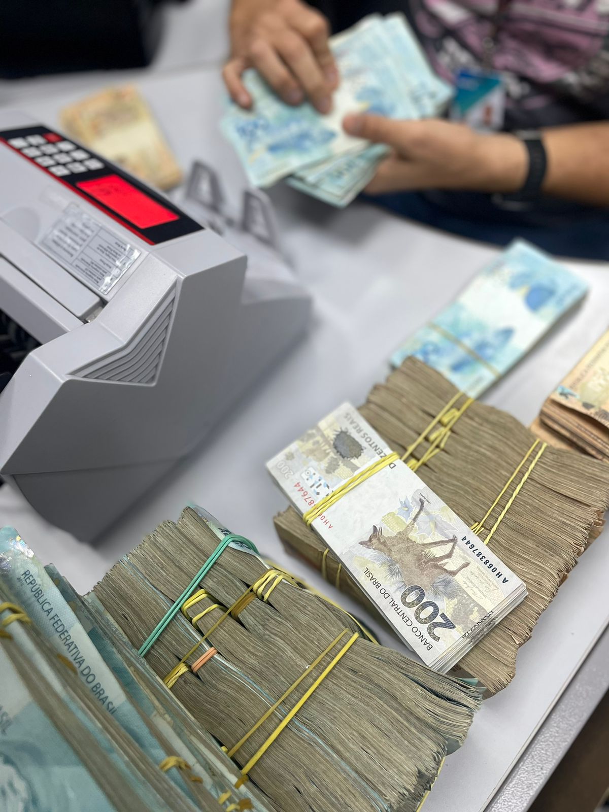 Polícia Federal começa a contar dinheiro apreendido em malas no Aeroporto Castro Pinto