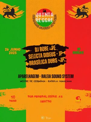 Sobre o Quinta Reggae- Criado em maio de 2023, o Quinta Reggae é um projeto de ocupação cultural que promove a arte e fortalece a cena musical no Centro Histórico de João Pessoa. Produzido pelo Radiola Jamaicana, o projeto realiza edições semanais com DJs e bandas convidadas, formando uma rede de fomento à cultura reggae e gerando renda e visibilidade para artistas locais e paraibanos.
