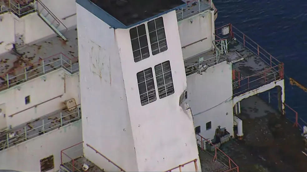 Torre de exaustão que colidiu contra a Ponte Rio-Niterói — Foto: Reprodução