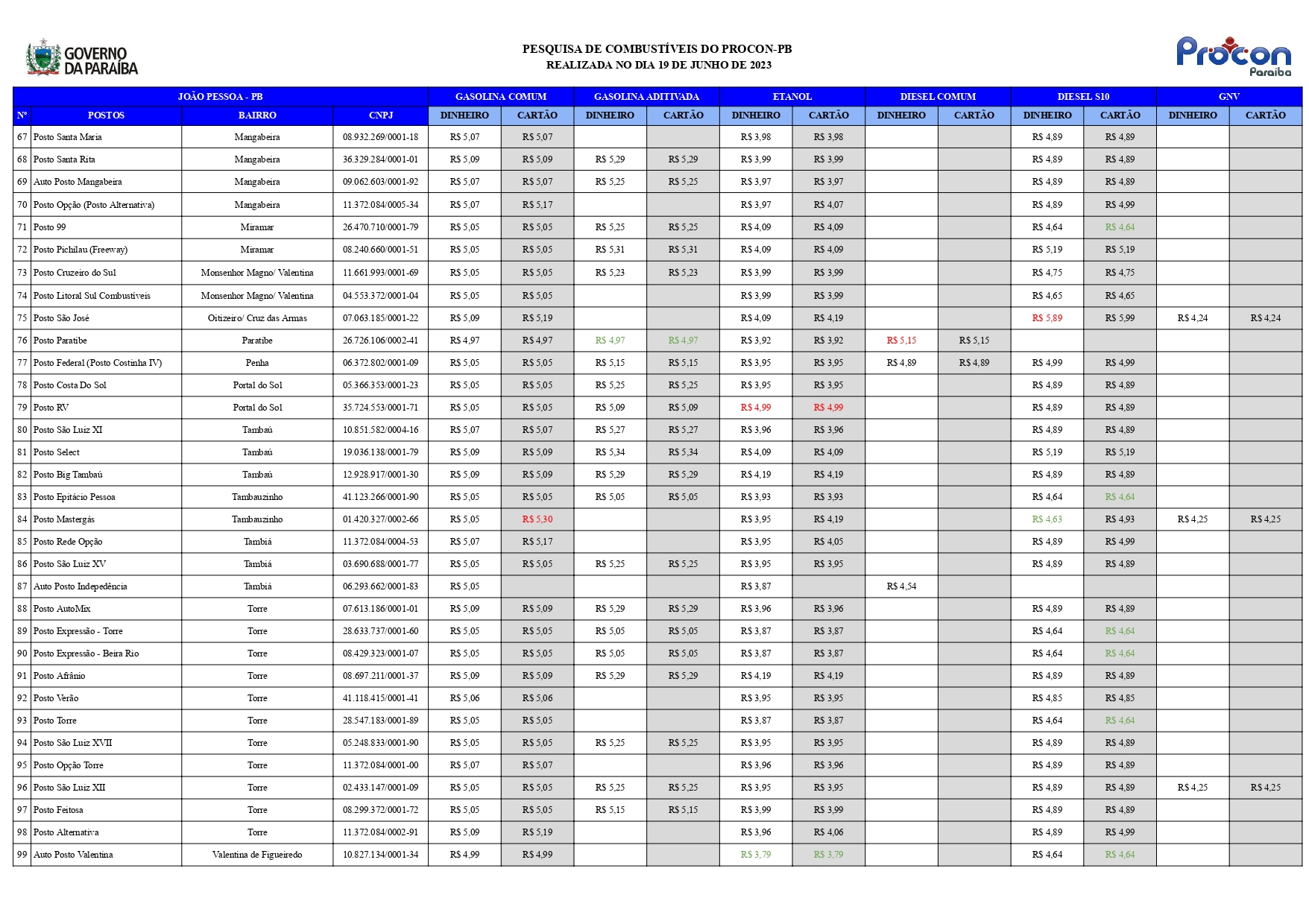 Litro da gasolina comum é vendido entre R$ 4,89 e R$ 5,19 nos postos de João Pessoa, mostra pesquisa