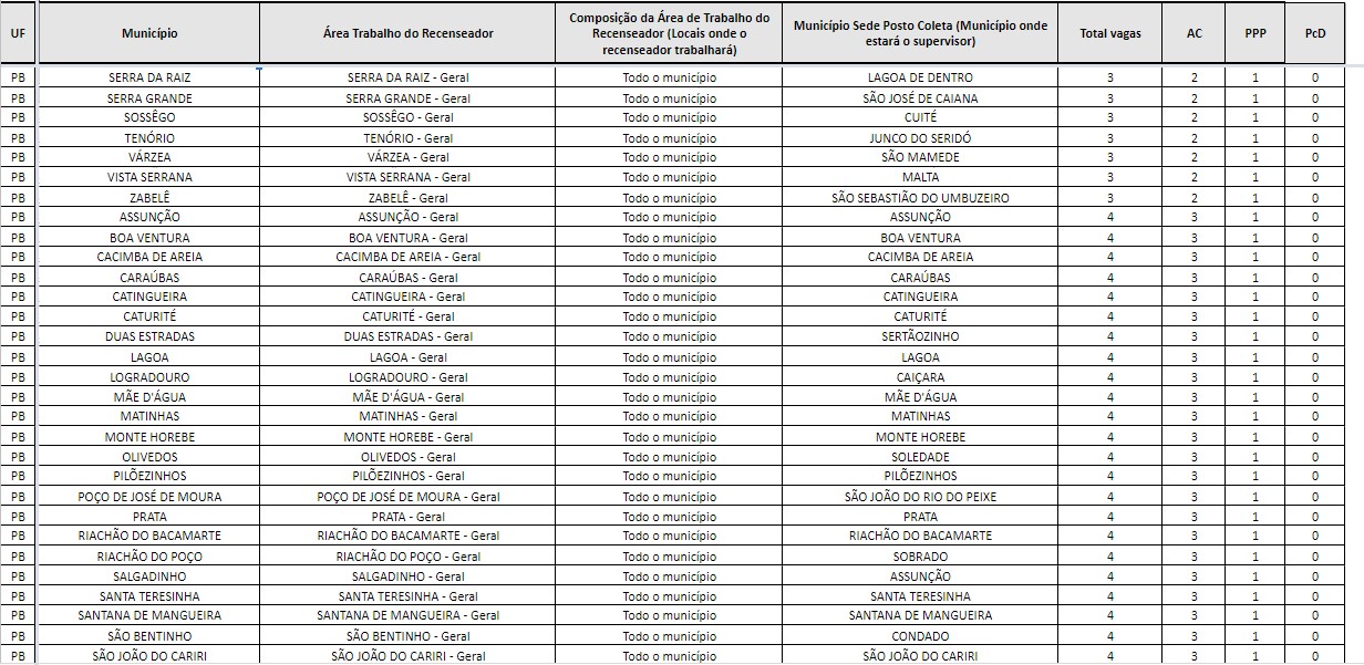 IBGE divulga edital com quase 4 mil vagas temporárias para a Paraíba; confira quadro de vagas por cidade