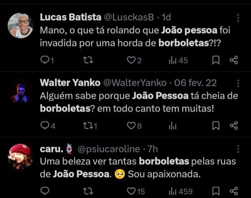 Bióloga, especialista em borboletas, explica que este é o período de reprodução da espécie. (Foto: reprodução internet)