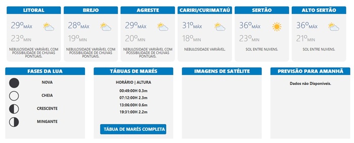 Paraíba tem chuvas pontuais e sol entre nuvens com temperaturas de 18° C a 36° C neste sábado