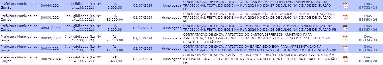 Os dados sobre os valores das atrações foram conferidos pelo ClickPB no site do Tribunal de Contas do Estado da Paraíba (TCE-PB). No entanto, algumas das atrações ainda não tiveram os valores divulgados na plataforma.