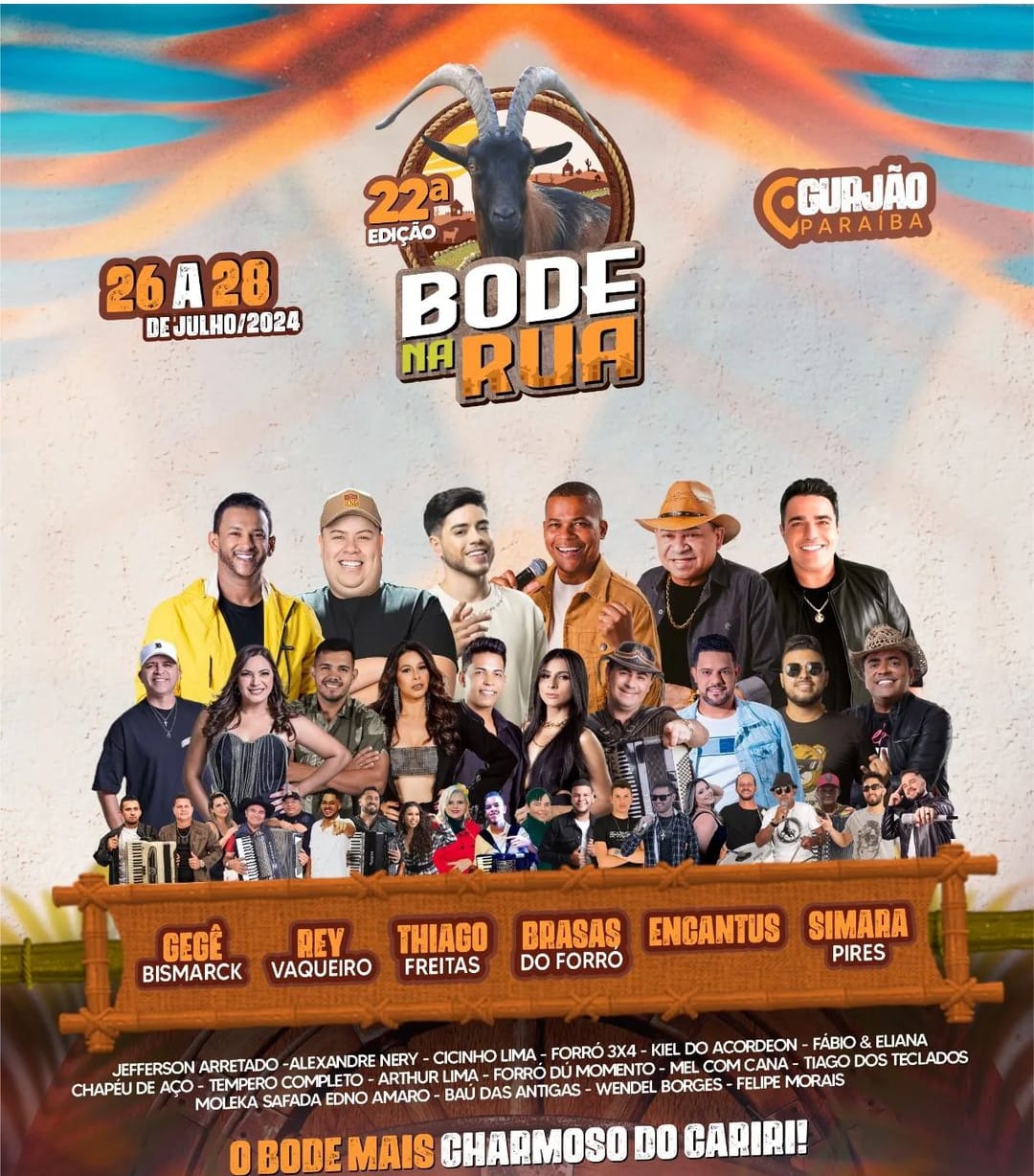 A cidade de Gurjão, no Sertão paraibano, vai realizar a partir desta sexta-feira (26) a 22ª edição da festa do Bode na Rua. O evento vai contar com shows de 22 atrações e custar R$ 141.380 mil só com os artistas.