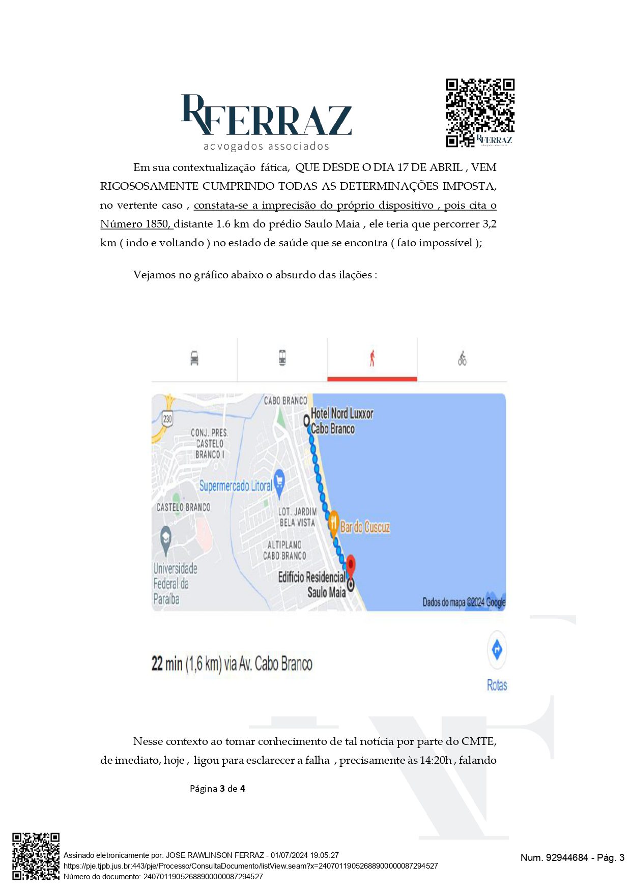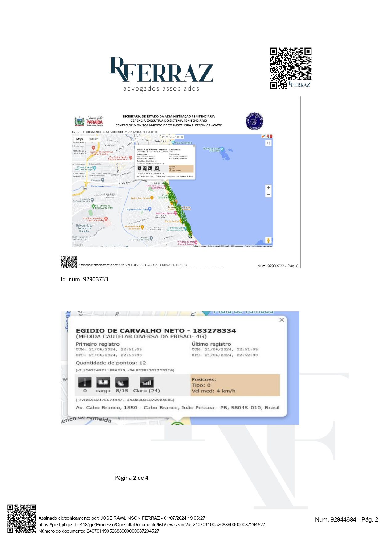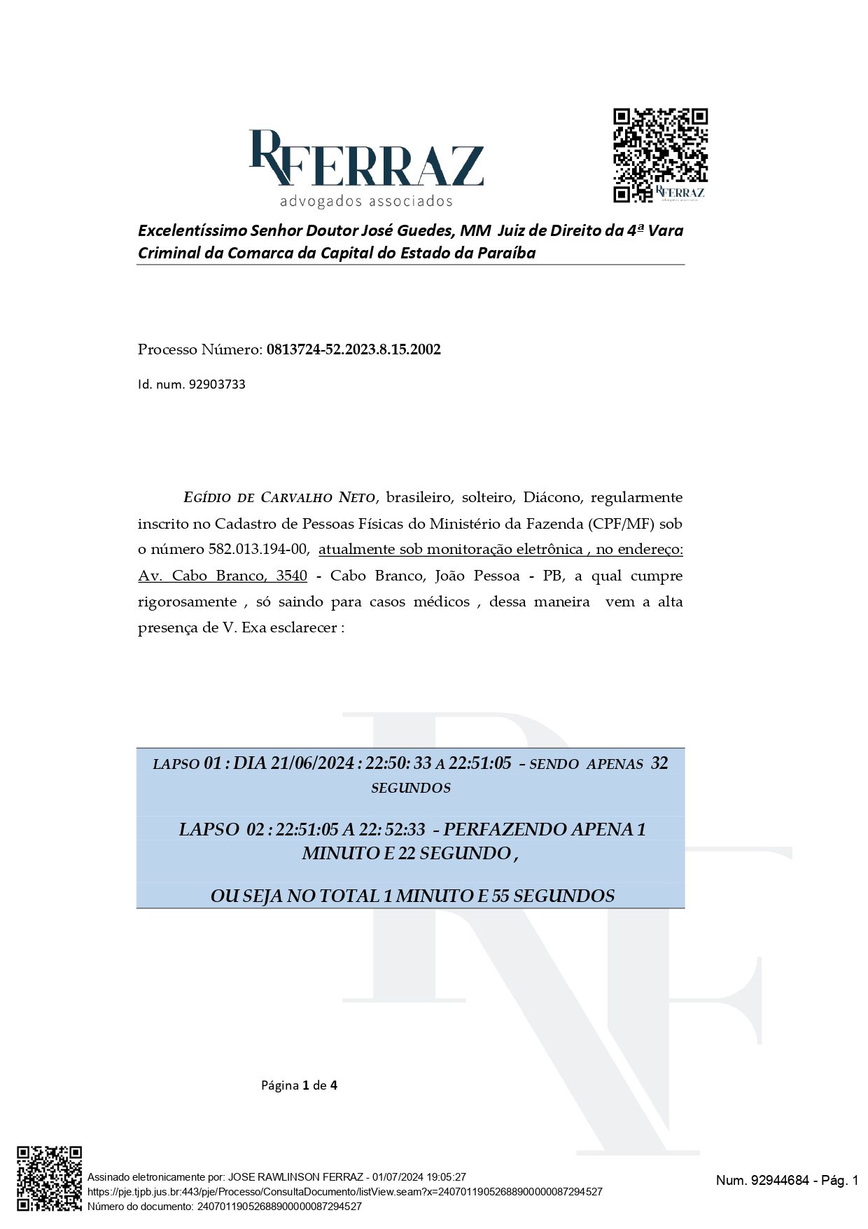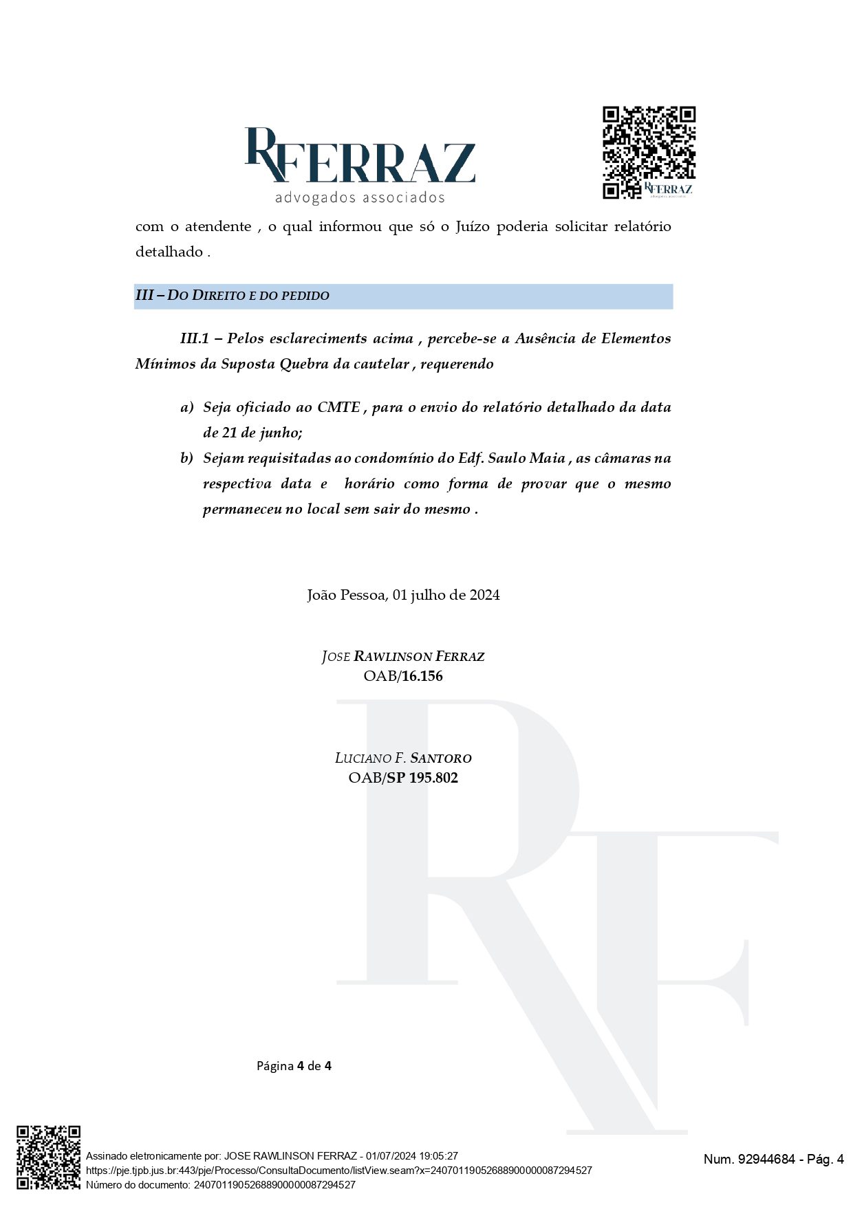 O ClickPB notou que os advogados alegam que houve um lapso no monitoramento entre às 22h50:33 e 22h51:05 do dia 21. Também teria ocorrido outro lapso de monitoramento entre 22h51:05 e 22h52:33.