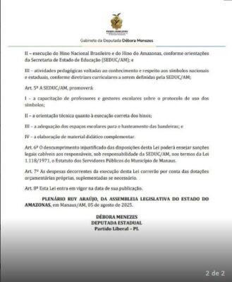 A deputada estadual Débora Menezes (PL) protocolado no Serviço de Apoio ao Processo Legislativo (SAPL) da Assembleia Legislativa do Amazonas (ALE-AM) um projeto de lei (PL 678/2025) que vem causando bastante polêmica.