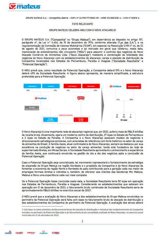 De acordo com o fato relevante publicado pelo Grupo Mateus, com a junção das duas empresas o grupo passa a comandar 36 lojas em Pernambuco, 10 lojas na Paraíba e quatro em Alagoas.