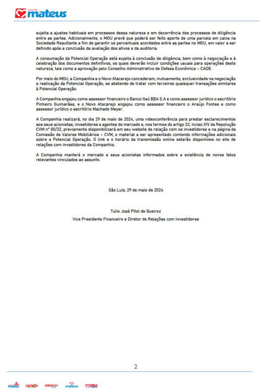 de alimentos do Brasil”, cita trecho do memorando publicado pelo Grupo Mateus obtida pelo ClickPB.