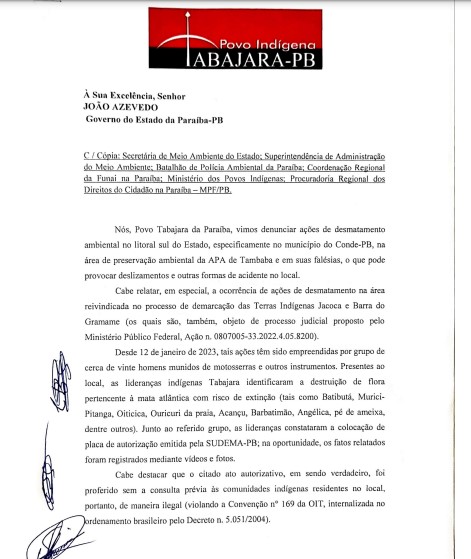 Indígenas do Povo Tabajara fazem protesto contra desmatamento nas falésias de Tambaba; região está em processo de demarcação