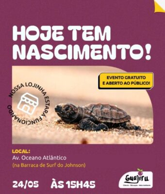 Hoje (24), às 15:45h, moradores e visitantes poderão apreciar um momento bastante emocionante nas areias da praia de Intermares. Hoje, tartarugas marinhas devem eclodir de seus ovos e ganhar as águas do Oceano Atlântico. O local exato do acontecimento é na escola de surf do Johnson, em frente a Praça dos Imortais.