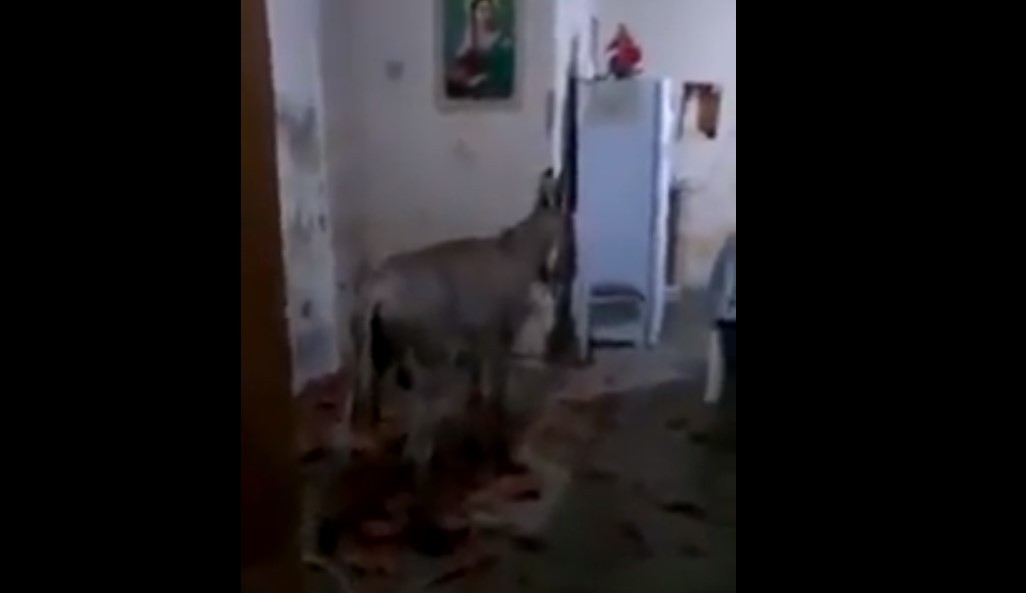 Jumento fica preso em telhado de residência no Sertão do Estado