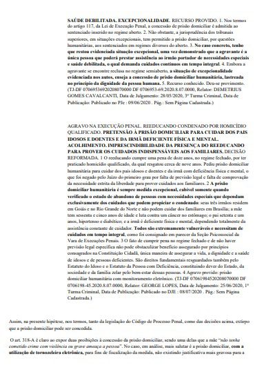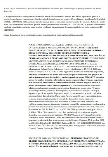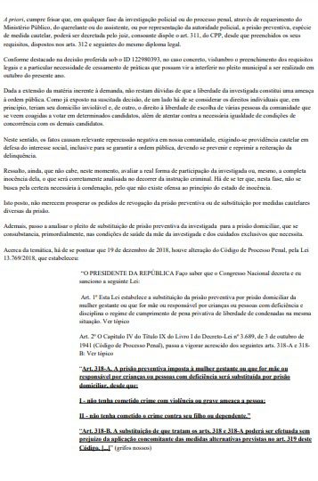 No pedido, é citada “a necessidade de oferecimento de cuidados exclusivos da investigada com a sua mãe, a qual fora interditada mediante demanda judicial”.