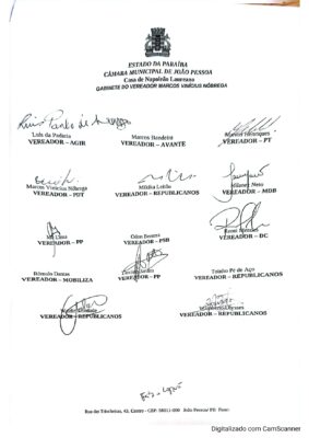 Confira os vereadores que assinaram o requerimento endereçado ao superintendente da Polícia Federal, na Paraíba: