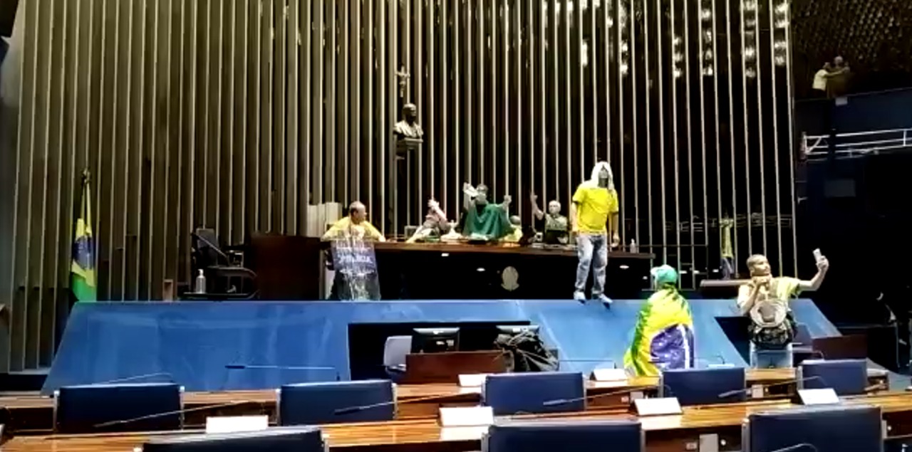Ao longo do tweet, publicado às 16h27, ela também defendeu que “o rigor da lei” seja aplicado aos envolvidos na situação. Segundo apurou a reportagem, até mesmo o plenário do Senado, onde atual Daniella e seus colegas foi invadido (foto abaixo).