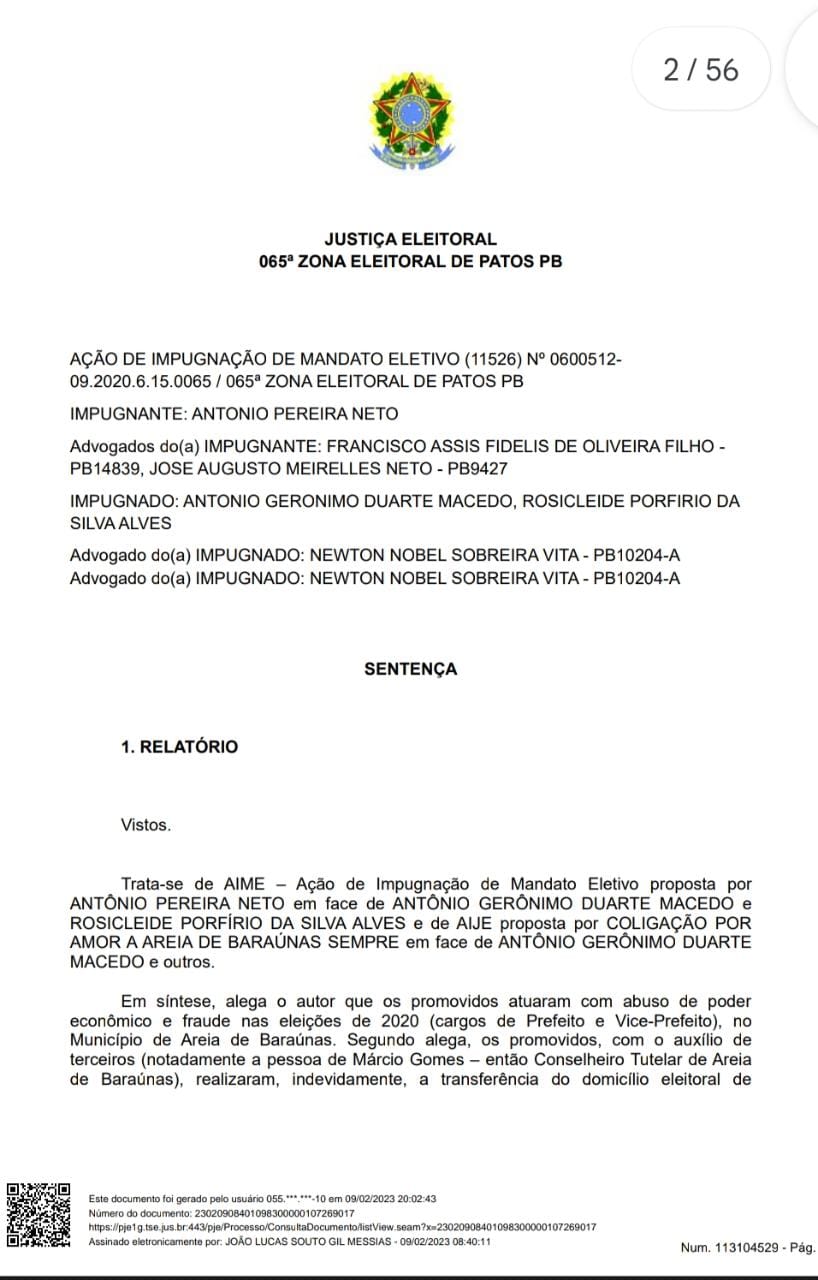 Justiça Eleitoral cassa mandatos de prefeito e vice-prefeita de cidade na Paraíba por fraude; nova eleição deverá ser marcada