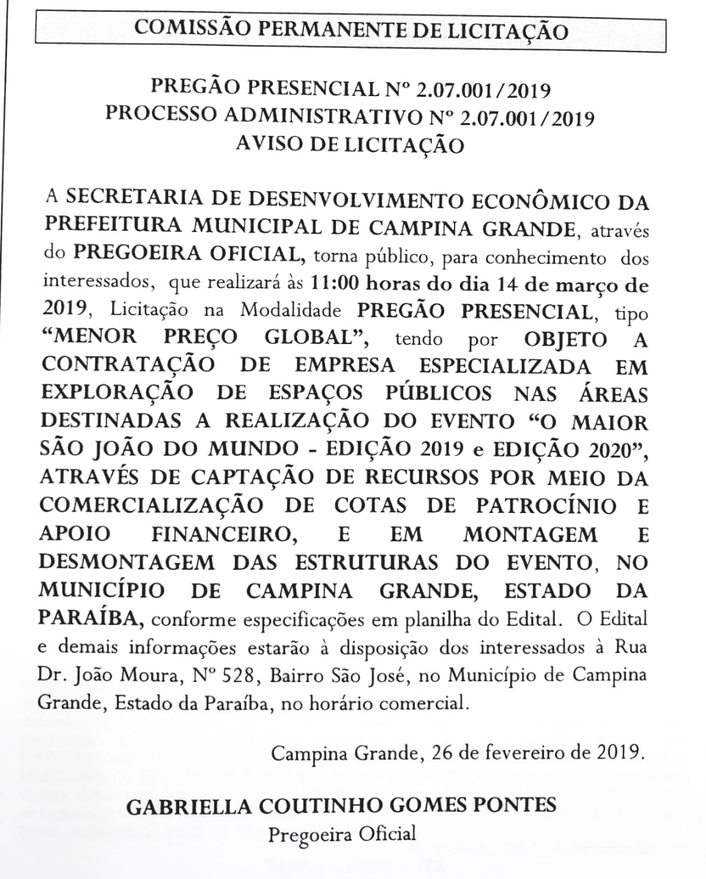 Prefeitura de Campina Grande terá que fazer nova licitação para contratar organizadora do São João