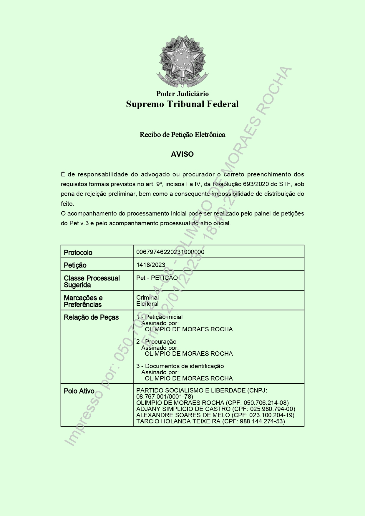 PSOL entra com ação no STF e pede prisão de Cabo Gilberto, Walber, Pâmela Bório, Nilvan e Eliza Virgínia