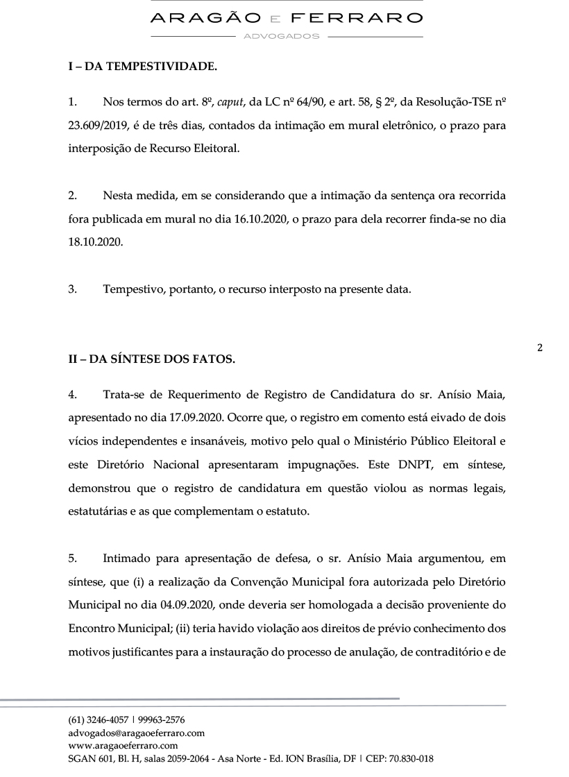 PT entra com novo recurso contra candidatura de Anísio Maia a prefeito de João Pessoa